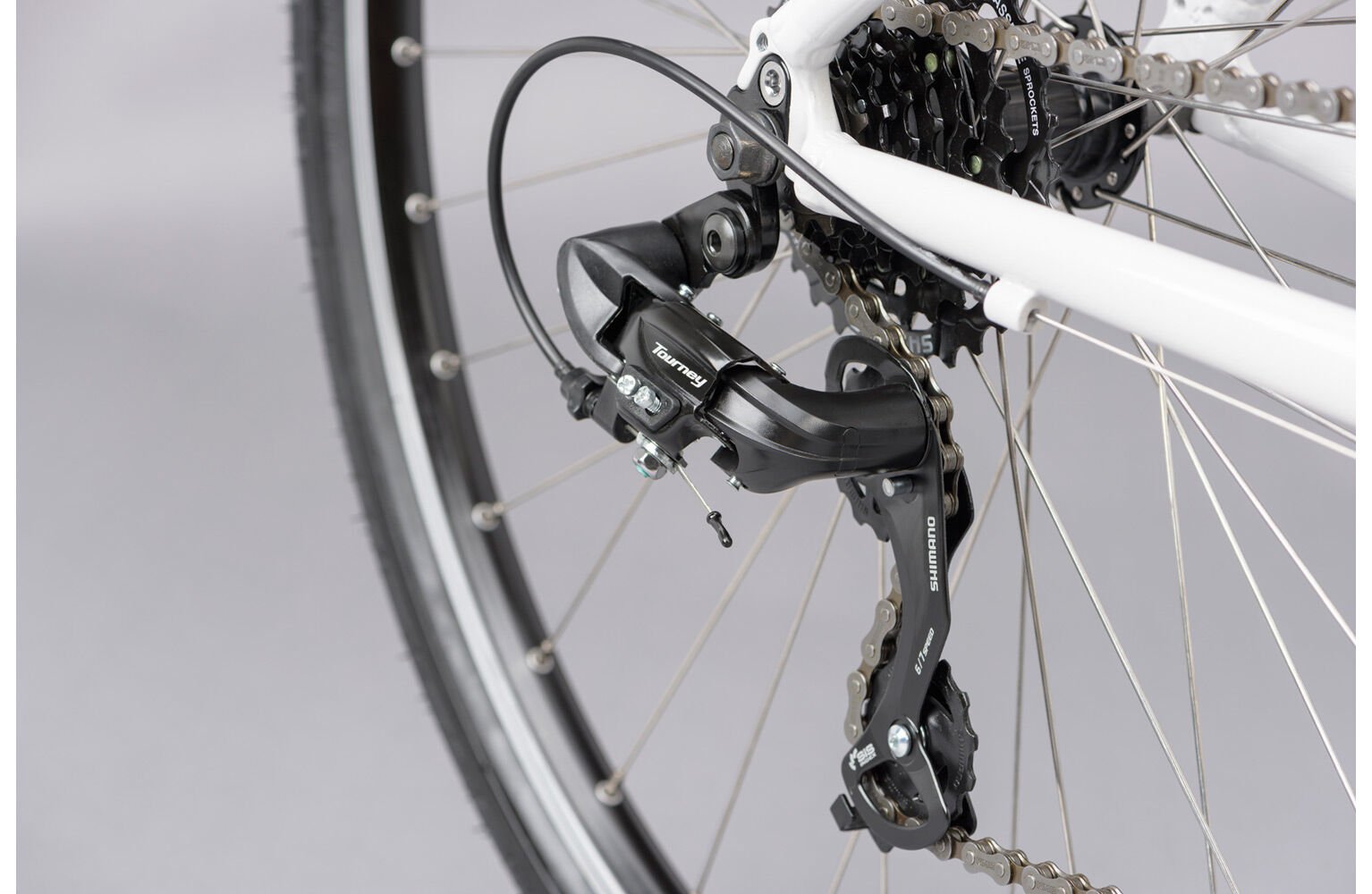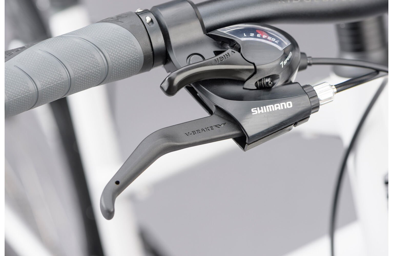Whether you’re riding at speed on the flat, or negotiating a steep climb, the smooth-shifting Shimano gears provide you with the perfect option for every terrain, without hurting your legs.
